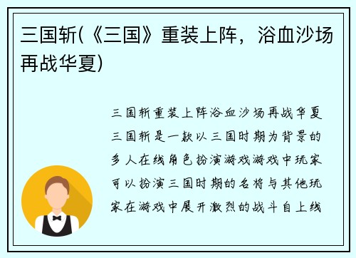 三国志赵云传(重见赵云:三国英雄传奇)  三国时期是中国历史上最为著名和充满传奇色彩的时期之一,而赵云则是被历史评价最高的三国时期将领之一。他勇武善战,在蜀汉历史上留下了浓墨重彩的一笔。本文将从“重见...